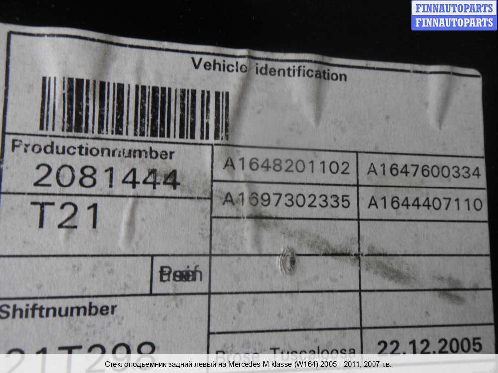 | Стеклоподъемник электрический задний левый | Mercedes M-Class ML W164 (2005-2011) |