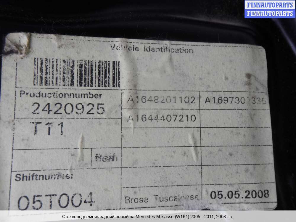 | Стеклоподъемник задний левый | Mercedes M-klasse (W164) Рестайлинг 2008 - 2011 |